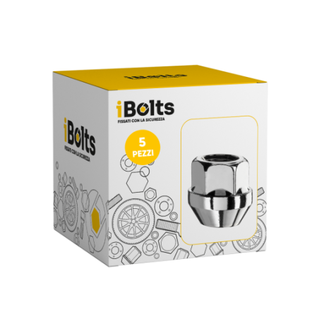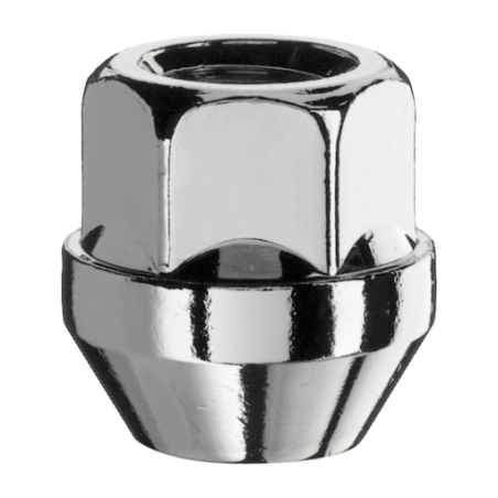 Scopri di piùDado ruota aftermarket aperto per montaggio di ruote in lega o acciaio Sede conica 60° Chiave 19 Passo filettatura 7/16 UNF Estetica e protezione esterna garantite dalla zincatura lucida