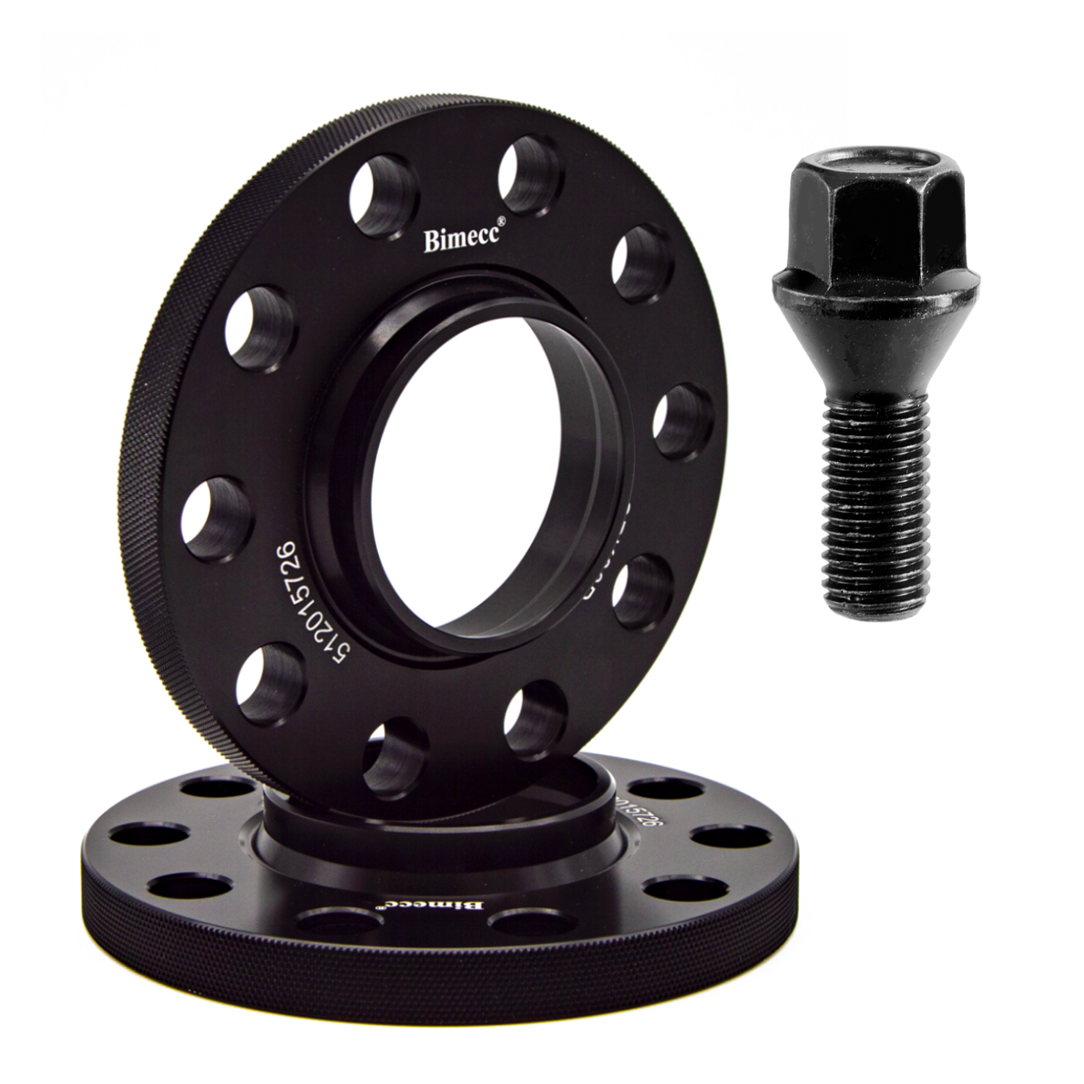 Distanziali neri Bmw 15mm 5x120 74,1 kit 2pz con bullone conico nero M14x1,25