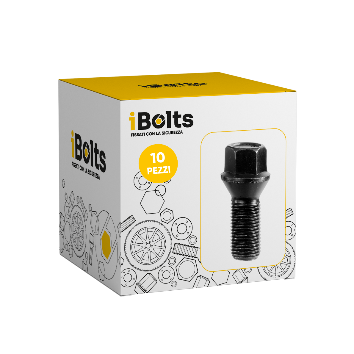 Bullone ruota auto sede conica 60° chiave 17 M14X1,50 35mm znni nera kit 10pz DRC17D35-ZNNI_010