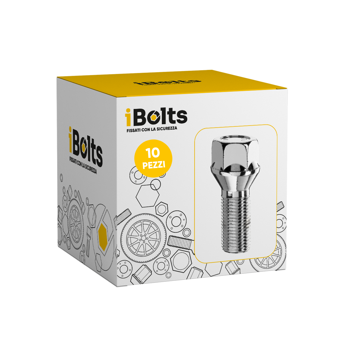 Bullone ruota auto sede conica 60° chiave 19 M14X1,50 36mm zinc.bianca kit 10pz DRC19D36_010