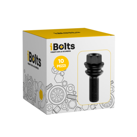 Bullone ruota auto sede rondella sferica R14 chiave 19 M14X1,50 30mm znni nera kit 10pz DRPS19D30-MW-ZN_010